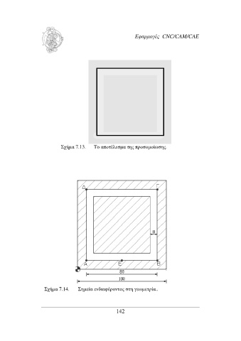 Εφαρµογές CNC/CAM/CAE Σχήµα 7.13. Το αποτέλεσµα της προσοµοίωσης. Σχήµα 7.14. Σηµεία ενδιαφέροντος στη γεωµετρία.. 142